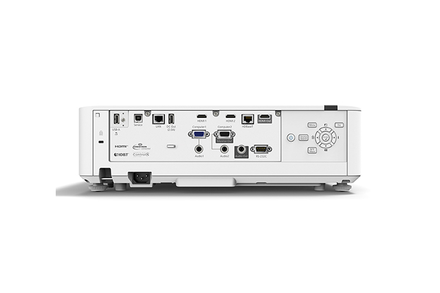Input: HDMI: 2 (HDCP 2.3) , HDBaseT: 1 (HDCP 2.3), Audio Input Stereo Mini Jack: 2, Audio Output: Stereo Mini Jack: 1, RS-232C: D-Sub 9pin x 1, USB Type A: 2 (Port 1 for PC Free, Firmware Update, Copy OSD Settings; Port 2: for 5V/2A -power supply only, no USB function), D-Sub 15Pin: 1 (VGA)